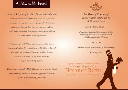 Inspired cuisine in Interesting homes with people Indispensable to House Of Ruth. Celebrating 34 years of service to the community.
