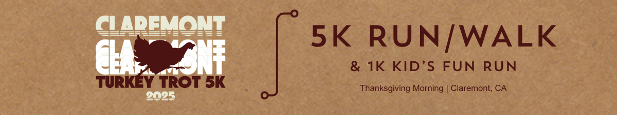 Packet pickup for the Claremont Turkey Trot takes place in front of the historic Claremont Depot, located at 200 W 1st St, Claremont, CA 91711. The race packet includes your bib and race shirt.