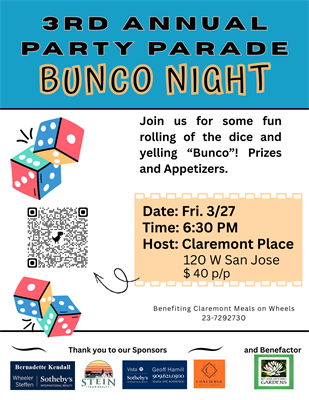 Tell your server you are with Claremont Meals on Wheels so they will donate a percentage of their sales on Wednesday, March 18th, thank you!